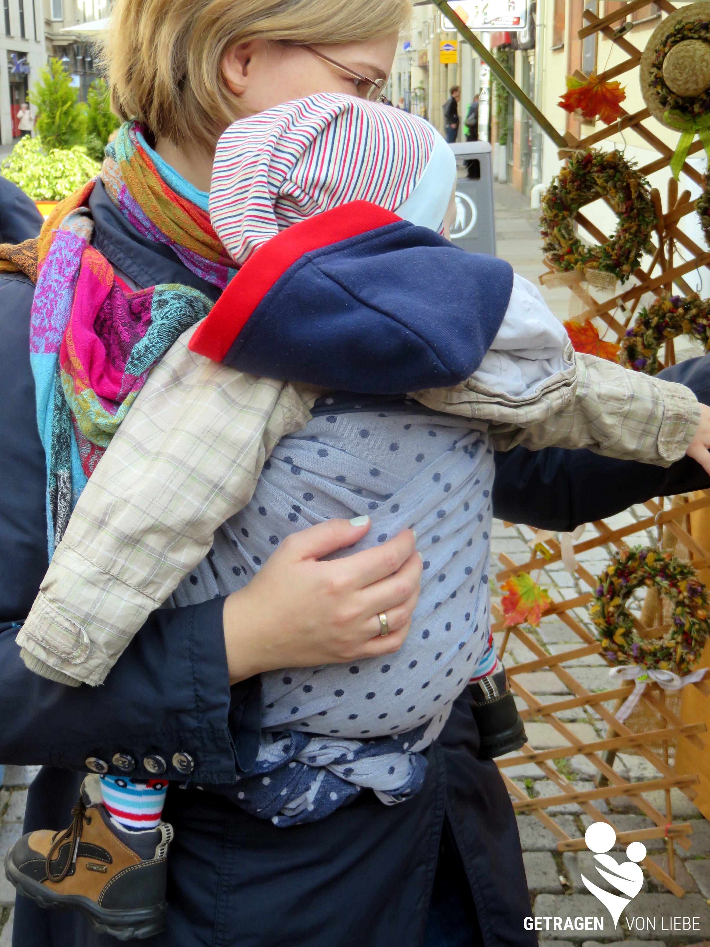 Die Prime Webung wird bei Pollora am meisten verwendet. Obwohl ich anfangs auf Grund des geringen Flächengewichts skeptisch war, muss ich zugeben, dass dieses Tuch sehr wohl das Gewicht sehr gut verteilt und gerade mehrlagig auch für größere Kinder sehr gut geeignet ist. Die Denim Dots sind farblich alltagstauglich und sehr gut zur Jeans tragbar. Sie fassen sich sehr weich an, wie alle Pollora-Tücher, müssen kaum eingetragen werden und lassen sich beim Binden wunderbar nachstraffen. Somit sind sie sowohl für Anfänger als auch für Fortgeschrittene eine Empfehlung wert.