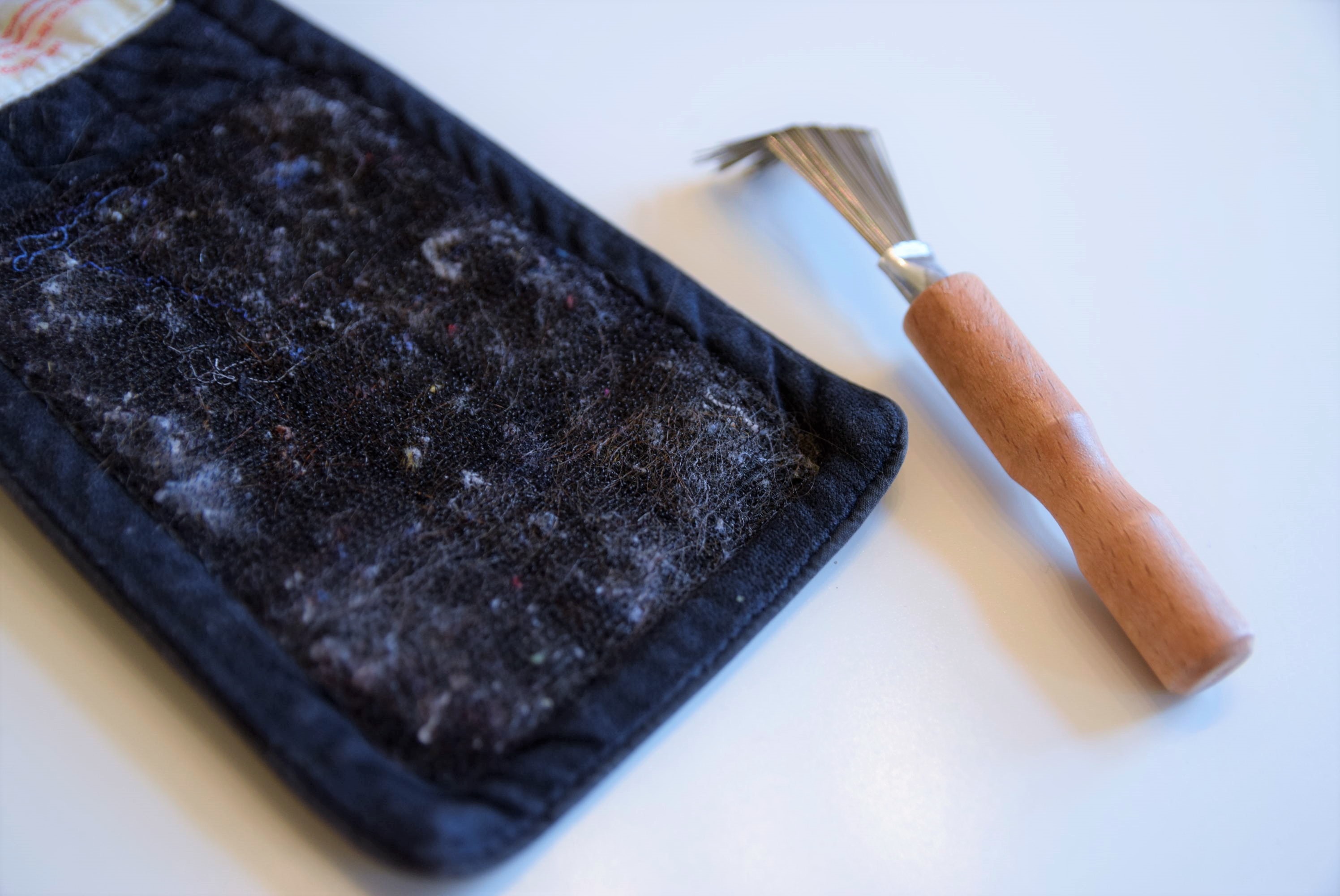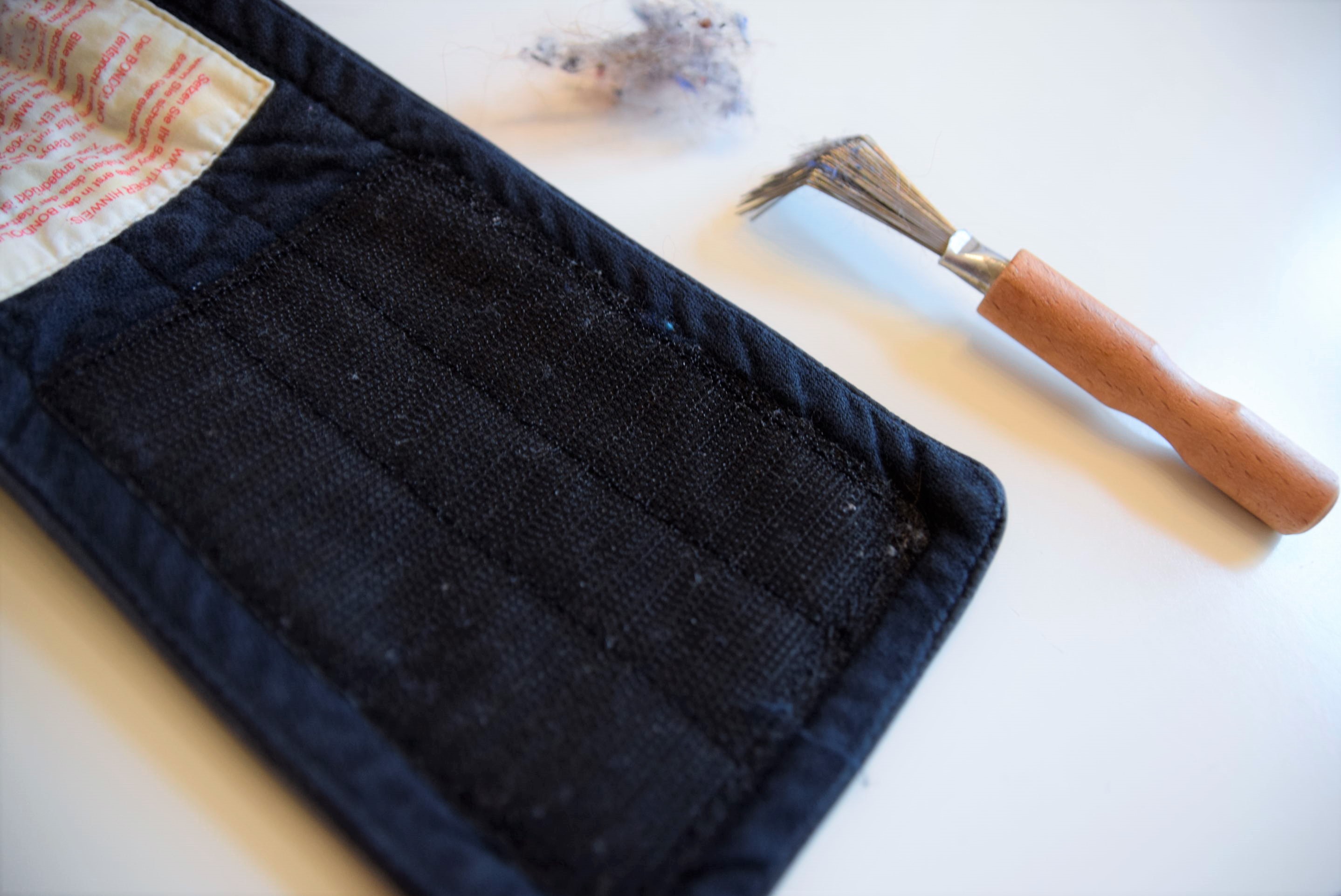 Einige Tragen arbeiten mit Klettverschlüssen. Da geschieht es nicht selten, dass sie mit der Zeit immer mehr Fusseln und Flussen ansammeln, die sich in den Widerhäckchen verfangen. Schlimmstenfalls verliert der Verschluss so seine Klettwirkung, aber auch so sieht es einfach nicht mehr so schick aus, wenn sich allerlei darin angesammelt hat. Sehr gut kann man dieses Problem mit einer Klettverschlussbürste und am besten noch einer Klebefusselrolle lösen. Ganz einfach herausbürsten und die losen Fusseln mit der Rolle aufnehmen. Ich war total überrascht, wie gut das Ergebnis geworden ist. Klappt bei anderen Klettverschlüssen von Taschen und Stoffwindeln übrigens genauso gut.