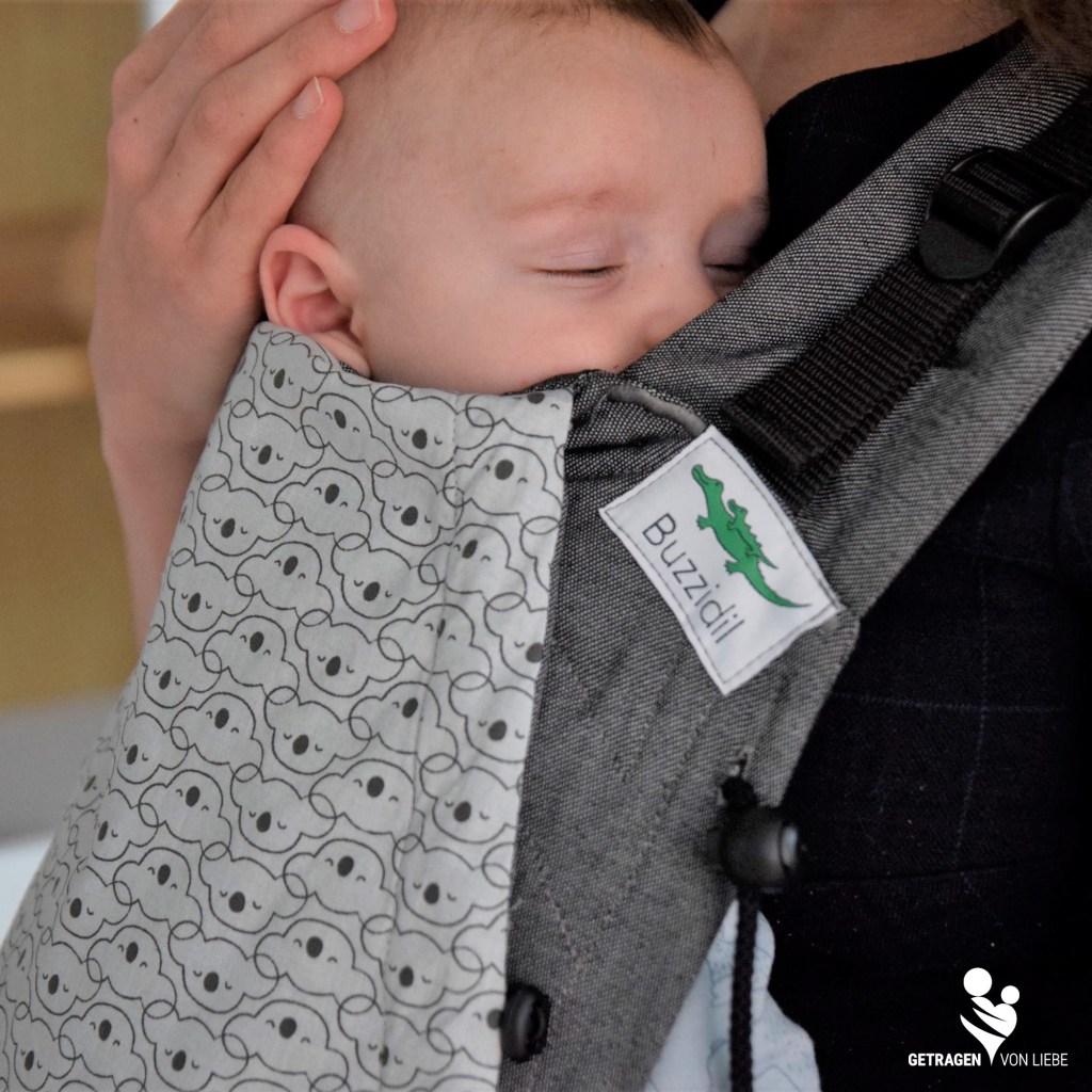 Endlich gibt es auch einen Halfbuckle in gewohnter Buzzidil-Qualität! Eine ganz tolle, weiche Trage für den Start ins Babyabenteuer. Neu-Eltern brauchen bei der Feinabstimmung vielleicht Hilfe und bei schweren Kindern sind später zusätzliche Schulterpolster Gold wert.